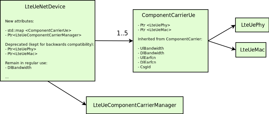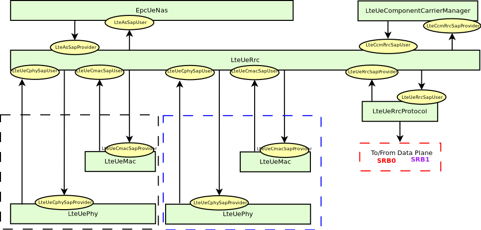 instance. The Ue RRC instance is then connected to the LteUeComponentCarrierManager