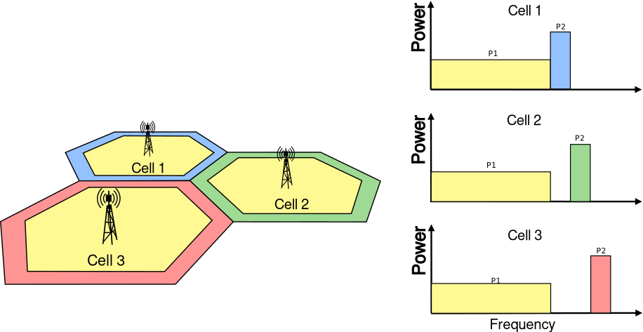 It should be possible within the simulation to configure different cells so that they use different carrier frequencies and system bandwidths. The bandwidth used by different cells should be allowed to overlap, in order to support dynamic spectrum licensing solutions such as those described in [Ofcom2600MHz] and [RealWireless]. The calculation of interference should handle appropriately this case.